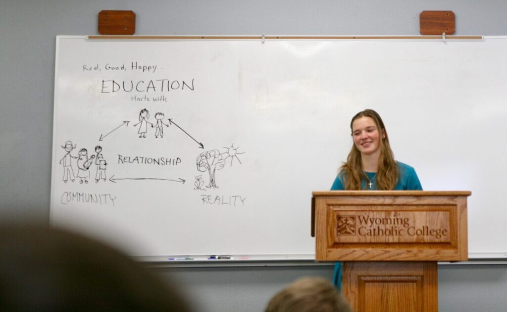Each year, a few weeks into the Spring Semester, the Wyoming Catholic College community celebrates Senior Orations Week. President Kyle Washut describes this week as “the culminating effort of [our] seniors’ training,” as well as “a foreshadowing of the way our seniors will share the common goods of Truth and Beauty in which they have immersed themselves these last four years with the world at large.”
