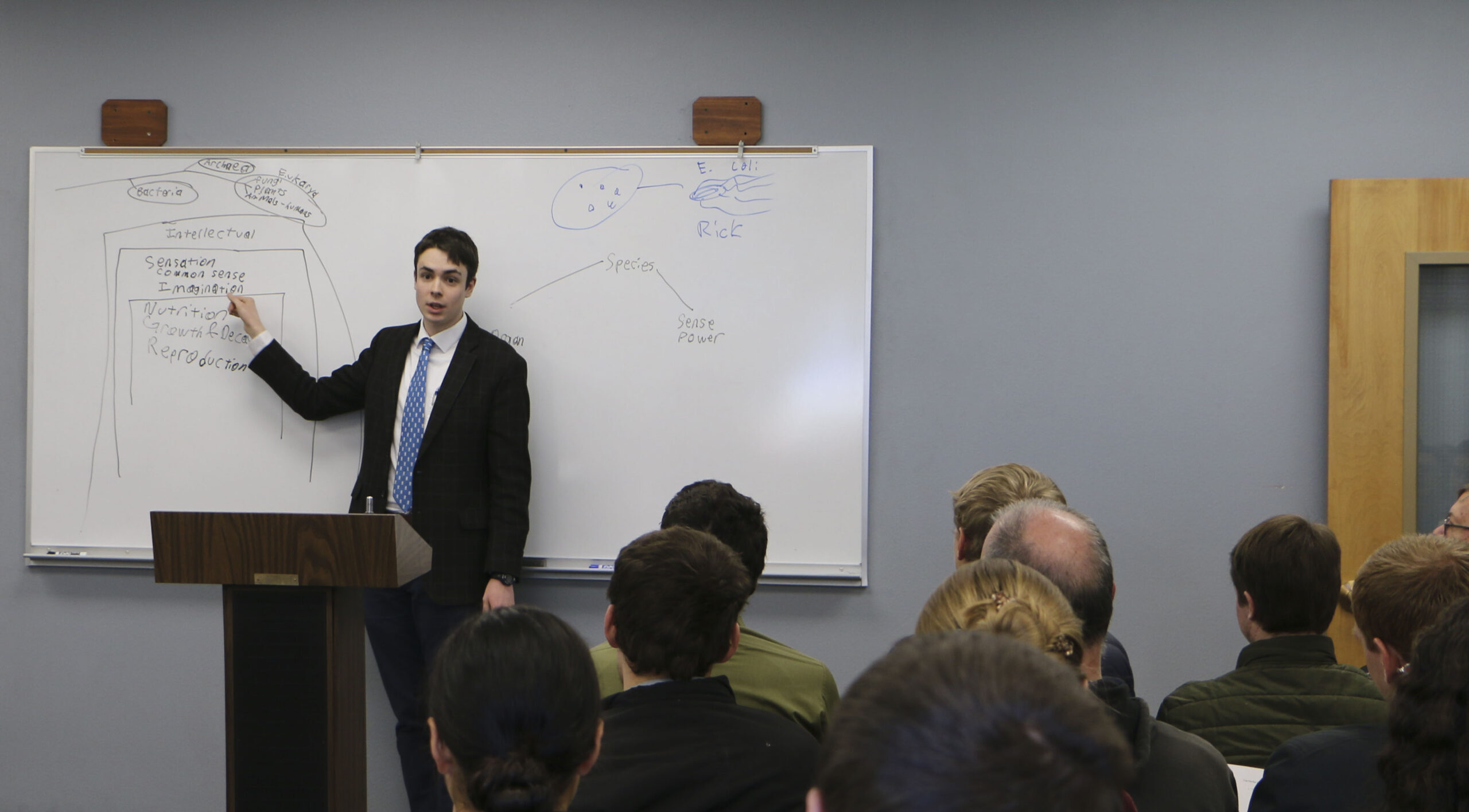 During this week, each member of the Senior class will deliver a thirty-minute oration, followed by a Q&A session, where they field questions on their presentation for another half hour. The oration is rarely a mere exposition of the thesis (which was completed at the end of the Fall semester), but often draws upon and expounds upon the work done during the thesis-writing process. The rooms are sure to be filled with fellow students, faculty and staff, family members, and friends of the College, eager to hear what has taken up the time and attention of these upperclassmen for the last few months.