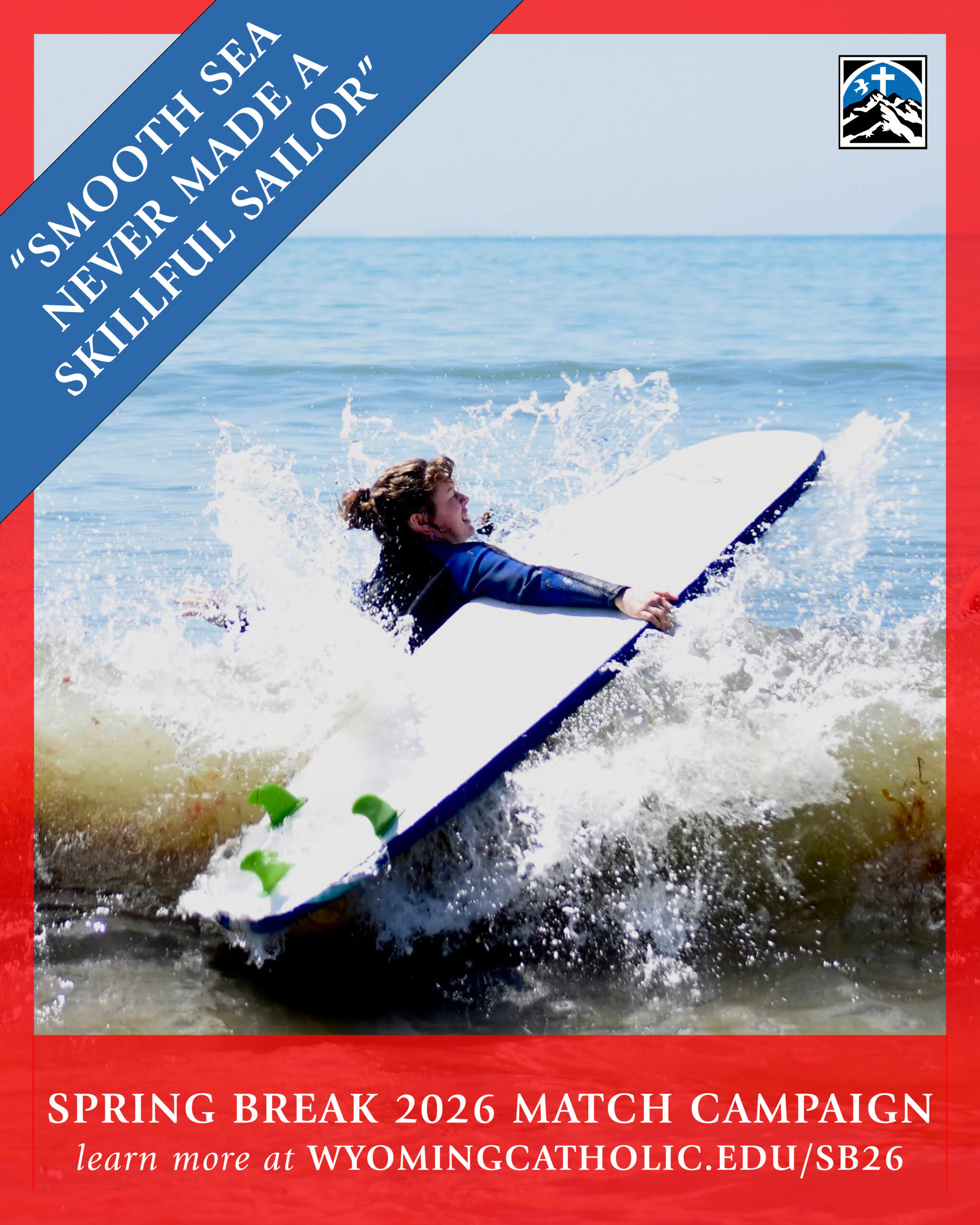 UPDATE: Today is the last day to participate in this year’s Spring Break Match campaign. Thanks to yesterday’s generous response (and an early morning surge), Wyoming Catholic College supporters have made gifts totaling $53,488, pushing us past our initial $50,000 goal and unlocking our second challenge goal of $65,000. If you have not yet joined the match, please consider making a gift TODAY!
