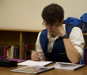 These techniques include asking specific questions which can by applied to any topic or text to spark deeper analysis; identifying overarching themes and important connections between texts; developing threads from classroom or lunch table discussions; and progressing possible arguments with precise syllogistic logic. The role of the tutor in invention-based sessions is to ask piercing questions, draw out fruitful connections, and indicate overlooked aspects of the text. Group invention sessions not only allow students to hear ideas beyond their own, but they demonstrate that writing is a conversation with peers as well as predecessors rather than an isolated pursuit. Through these methods, we guide students as they develop their initial thoughts and drive toward arguable theses. With an hour or two of dedicated invention, students bereft of ideas can produce such a surplus that they could not possibly include them all in one essay.